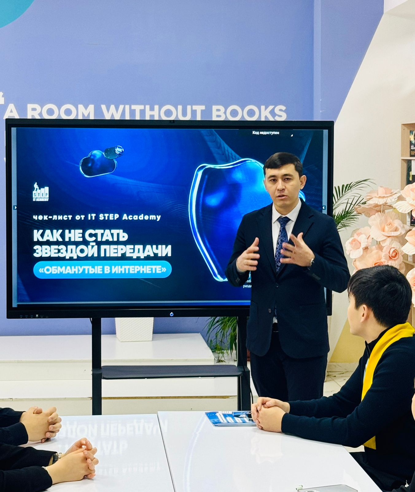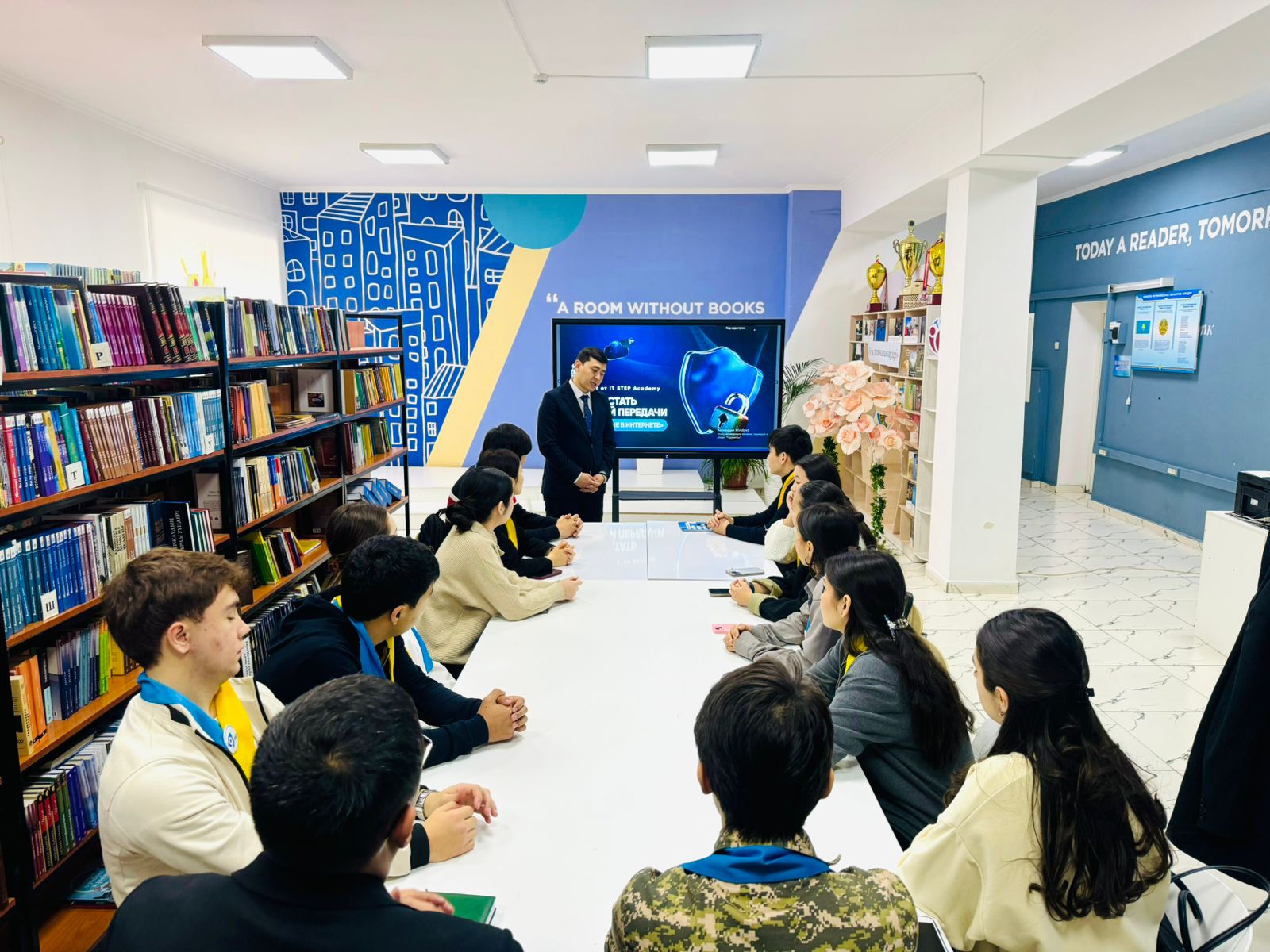 Шымкент қаласы білім басқармасына қарасты Ө.А.Жолдасбеков атындағы N9 IT лицейінде 05.02.2025ж "Біртұтас тәрбие" бағдарламасы аясында "Заң және тәртіп" айлығы барысында кәмелетке толмағандардың арасындағы құқықтық мәдениет негізін қалыптастыру бойынша лудоманияға және интернет желісіндегі қауіпсіздік туралы ақпараттық - түсіндіру жұмыстарын жүргізу мақсатында Шымкент қаласы білім басқармасының тәрбие бөлімінің әдіскері Н.К.Айтимбетов және ІТ STEP Academy директоры С.К.Исмаилов мектеп парламентінің белсенділерімен танымдық сабақ өткізді.