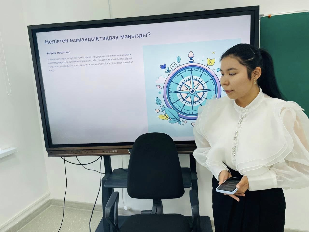 Шымкент қаласы білім басқармасына қарасты Ө.Жолдасбеков атындағы №9 ІТ лицейінде «АДАЛ АЗАМАТ» бірыңғай тәрбие бағдарламасының жылдық жұмыс жоспарына сәйкес 11-сынып оқушыларымен кәсіптік бағдар беру бағытында түсіндірме жұмыстары жүргізілді.