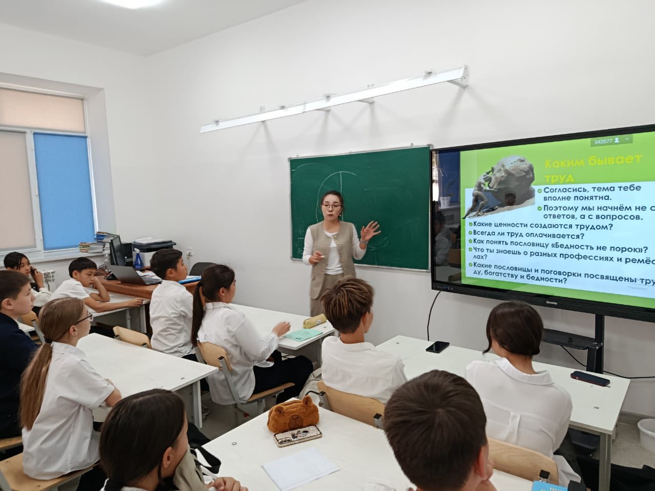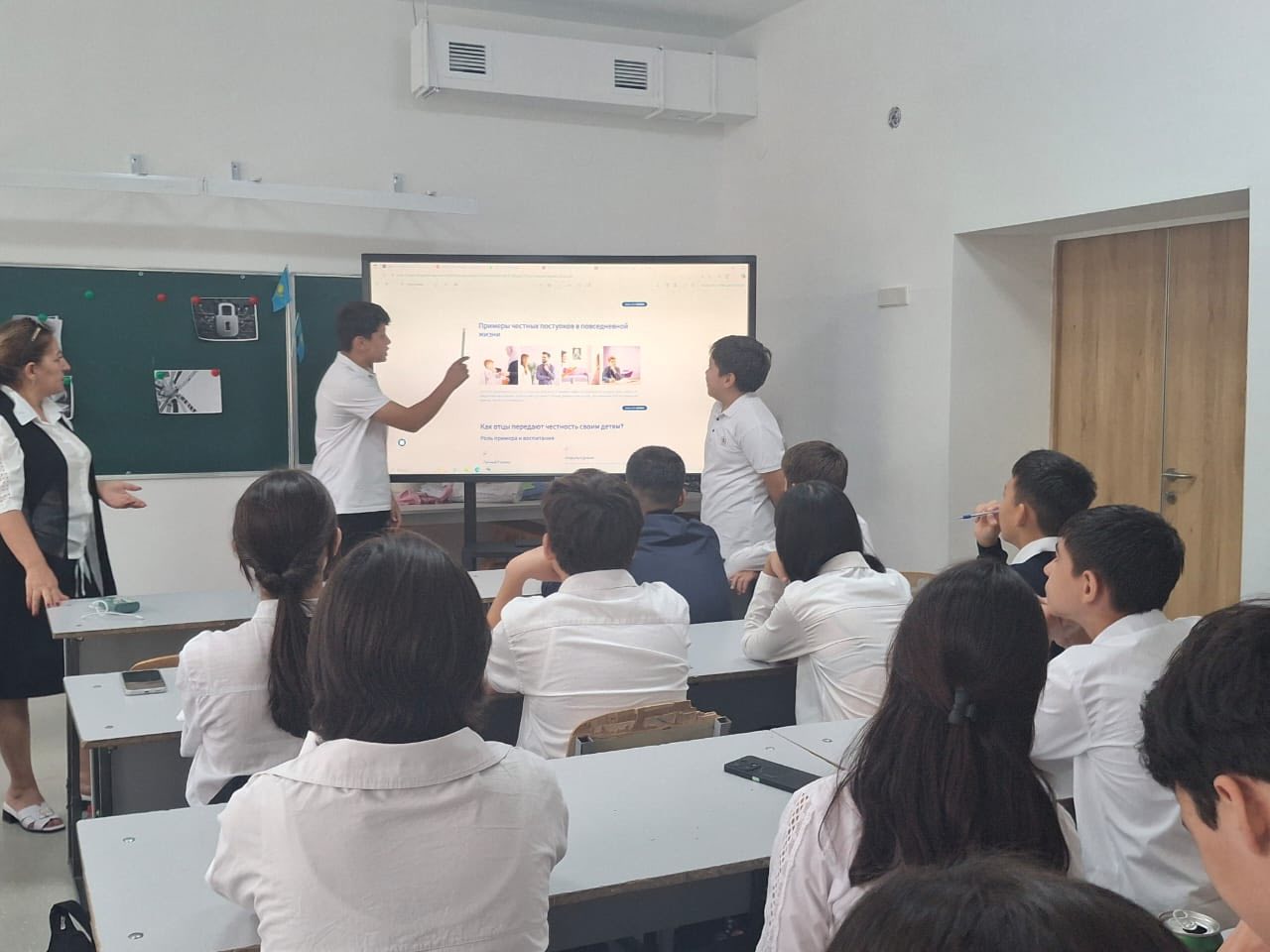 Шымкент қаласы білім басқармасына қарасты Ө.Жолдасбеков атындағы №9 ІТ лицейде «Адал азамат» біртұтас тәрбие бағдарламасы аясында оқушылардың еңбекқорлығын, жауапкершілігін және адалдық құндылығын дамытуға арналған сынып тәрбие сағаттары өтті.