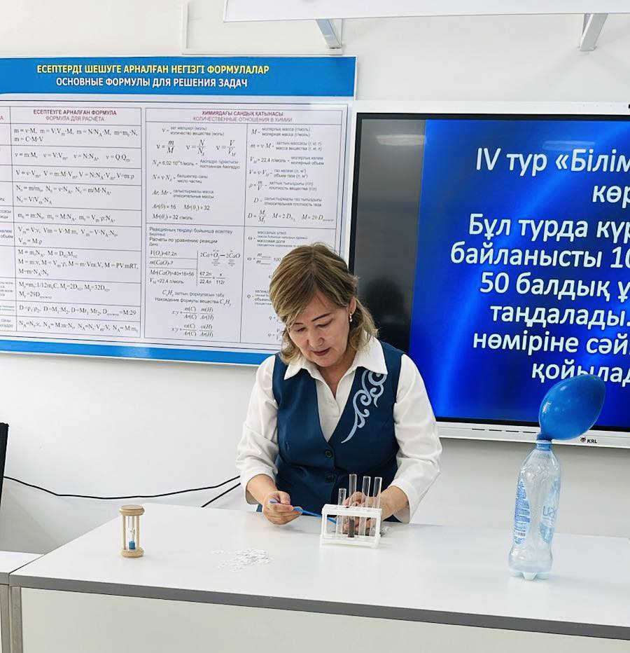 Химия-биология апталығында 8”Ә” сыныбына химия пәні мұғалімі Бектаева Қарлығаш Басарқызы “ Қызықты химия” атты сабақ өткізді.