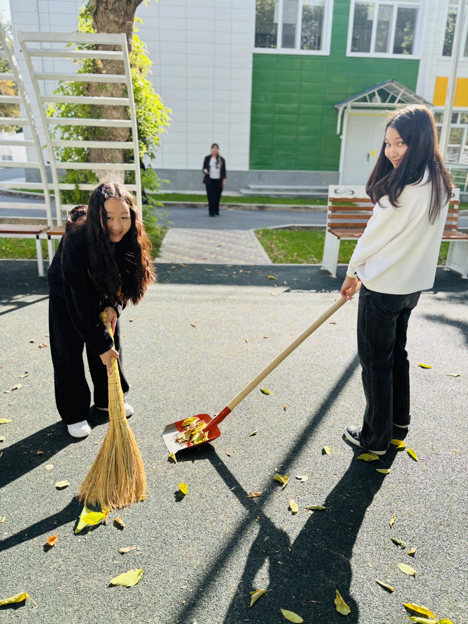 Оқушылар өз қолдарымен гүлзарларды тазалап, ағаштардың түбін ақтап, аула аумағын ретке келтірді. Мұндай іс-шаралар жас ұрпақтың бойында еңбекқорлық, бірлік пен табиғатқа жанашырлық сияқты құндылықтарды нығайтады.