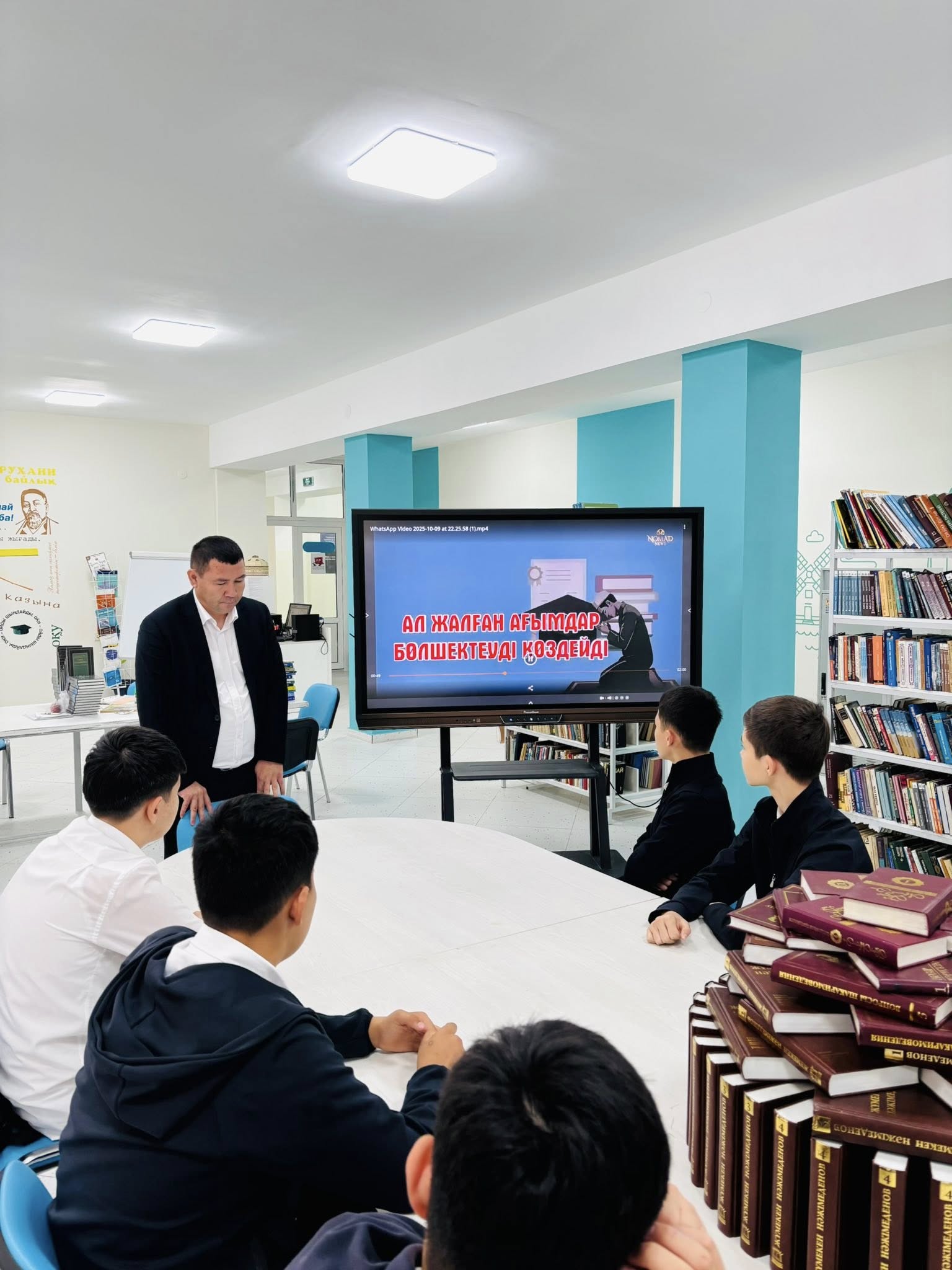 10 қазан 2025 жылы лицейімізде «Адал азамат» Біртұтас тәрбие бағдарламасының жылдық жұмыс жоспарына сәйкес Шымкент қаласы білім басқармасына қарасты Ө.Жолдасбеков атындағы № 9 ІТ лицейде оқушылармен зайырлылық қағидаттарын нығайту, қылмыстың алдын алу, діни экстремизм мен терроризм идеяларынан қорғау мақсатында ақпараттық-түсіндіру кездесуі ұйымдастырылды.