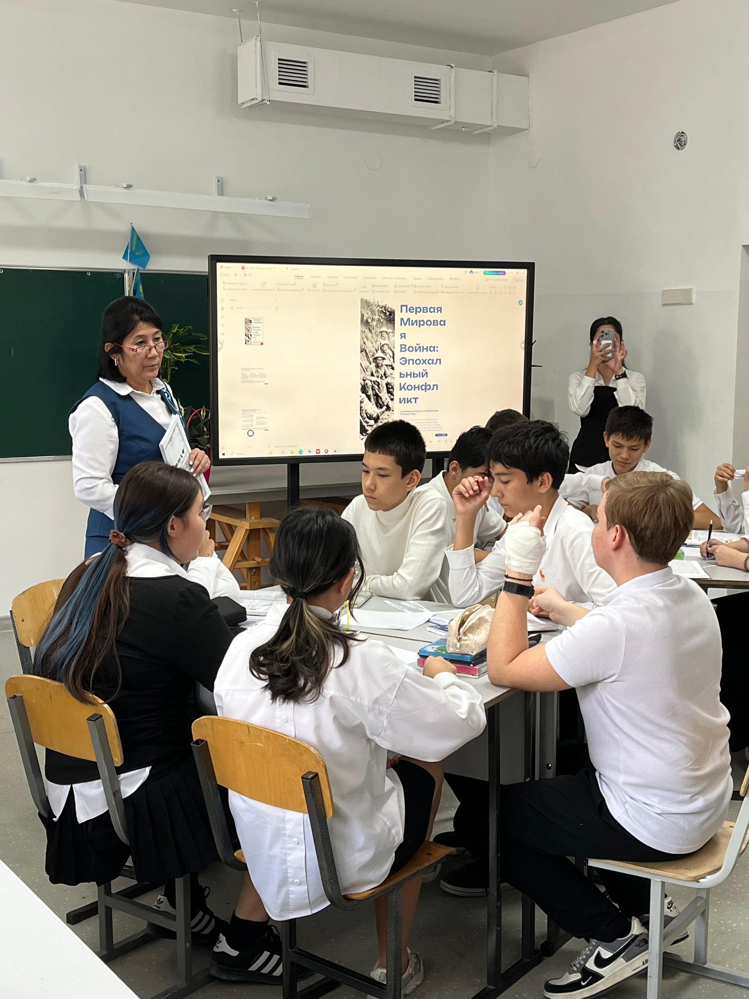 10.10.2025 күні 8 "Г" сыныбында Дуйсенбаева Гулнара Даулетовна өткізген «Бірінші дүниежүзілік соғыс» тақырыбындағы сабақ жоғары деңгейде ұйымдастырылды. Мұғалім тарихи деректерді оқушылардың жас ерекшеліктеріне сай ұсынды, тақырыпты талдауда сын тұрғысынан ойлау әдістерін тиімді қолданды. Оқушылар белсенді қатысып, тарихи оқиғаларға талдау жасап, өз көзқарастарын білдіре алды. Сабақ мақсатына толық жетті.