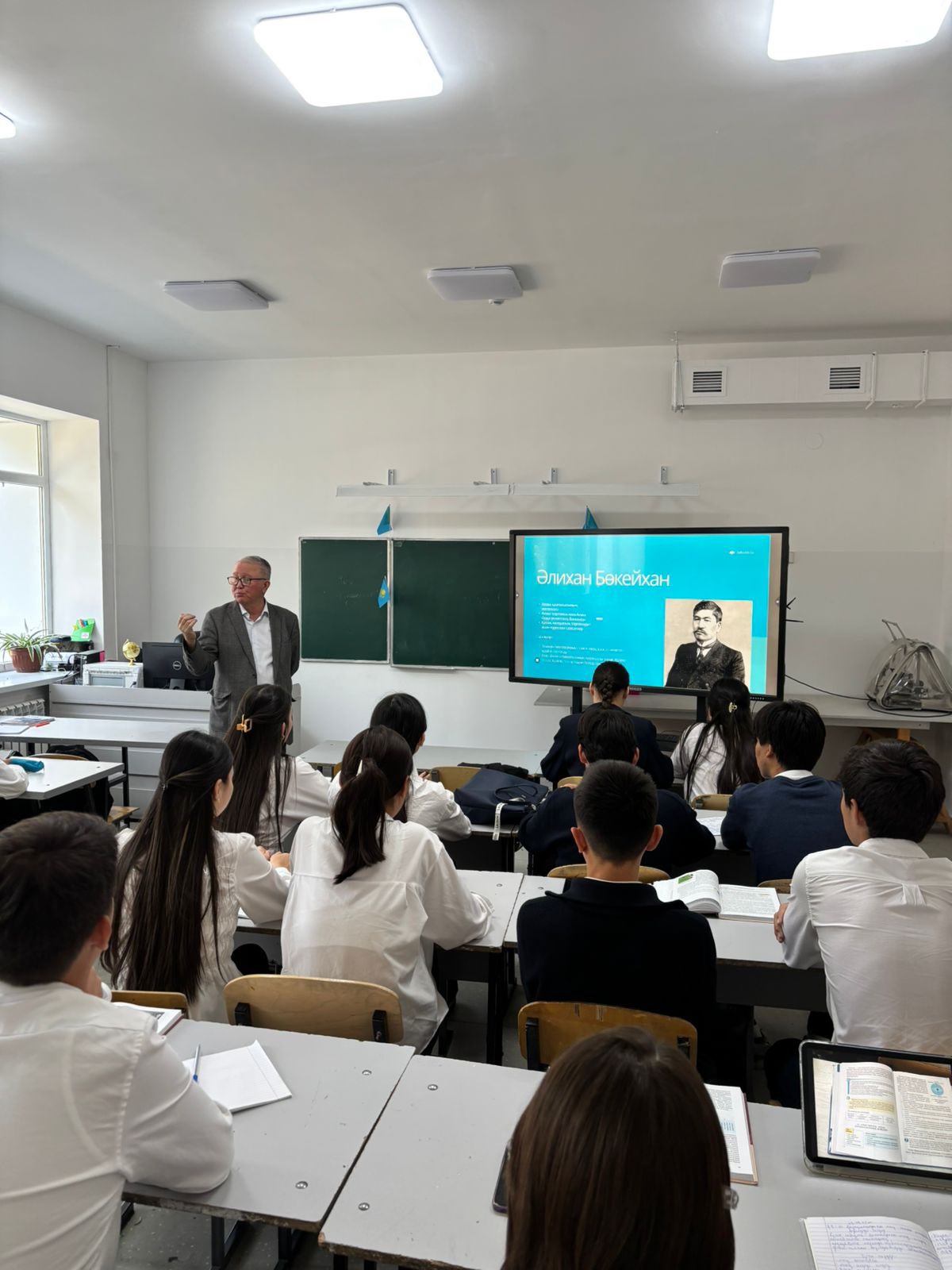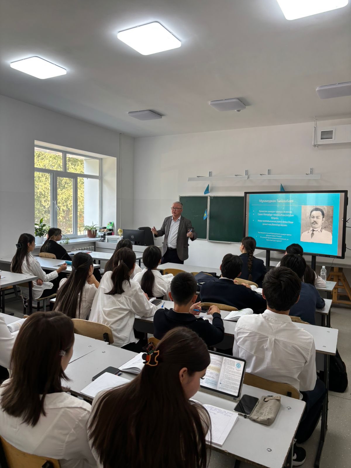 10.10.2025 күні 9 "Ғ" сыныбында Кененбаев Нұрлан Исаевич өткізген «Әлихан Бөкейханов – Алаш партиясының лидері» тақырыбындағы сабақ жоғары деңгейде өтті. Мұғалім тарихи деректерді жүйелі түрде түсіндіріп, оқушылардың ойлау, талдау қабілеттерін дамытуға назар аударды. Сабақта топтық жұмыс, сұрақ-жауап әдістері тиімді қолданылып, оқушылар белсенділік танытты. Тақырып тәрбиелік, тарихи тұрғыдан терең ашылды.