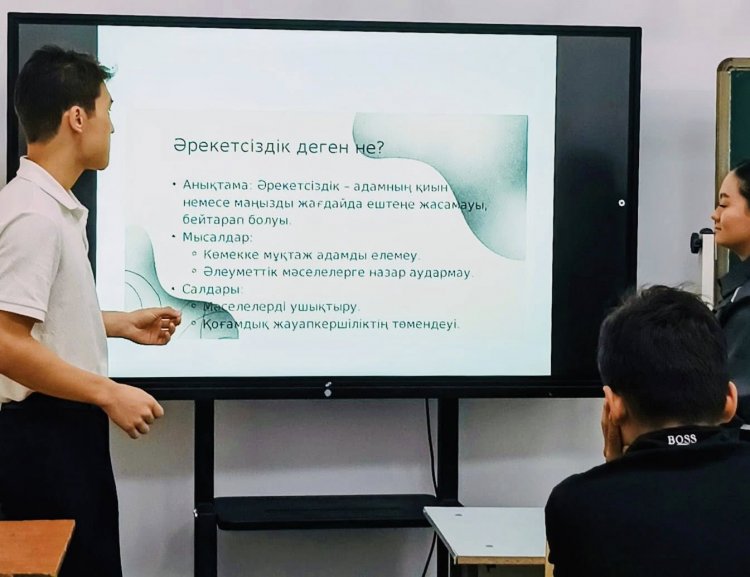 Оқушылар Абайдың өмірі мен шығармашылығына шолу жасап, оның адамгершілік пен білімге үндейтін өсиеттерін талқылады.