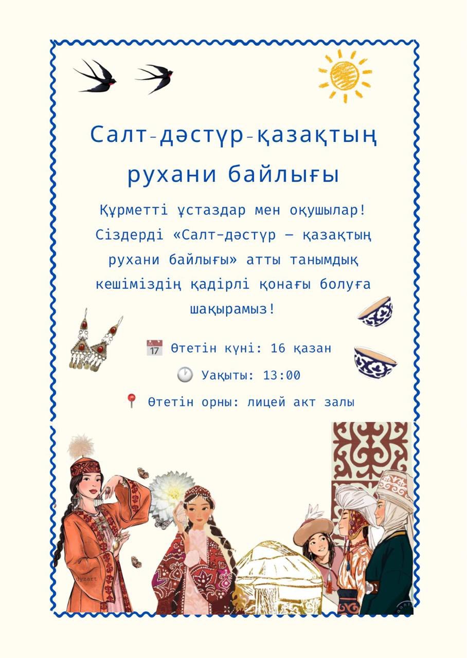 Қазақ тілі мен әдебиеті кафедрасының ұйымдастыруымен 5-7 сынып оқушылары арасында “Салт-дәстүр – қазақтың рухани байлығы” атты танымдық іс-шара өтті.