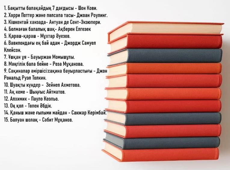 Тізімде әр сыныптың жас ерекшелігі мен оқу деңгейіне сай таңдалған 15 керемет туынды бар.
