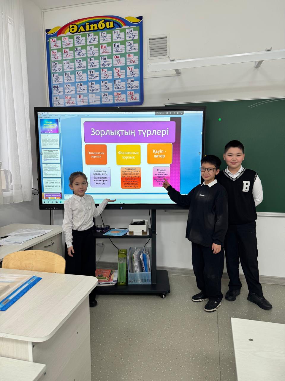 «Қорқыныш сезімі – дос па әлде жау ма? (Буллингтен қорған!)» тақырыбында әңгімелер жүргізіліп, оқушыларға буллингтің алдын алу, өз ойын ашық жеткізу және көмек сұрау жолдары түсіндірілді.