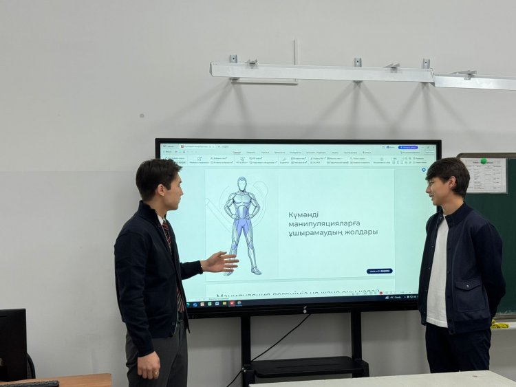 Қауіпсіздік сабағында (10 минут) «Күмәнді манипуляцияларға ұшырамаудың жолдары» тақырыбы қозғалып, оқушыларға ақпараттық сауаттылық пен сын тұрғысынан ойлау дағдылары қалыптастырылды.