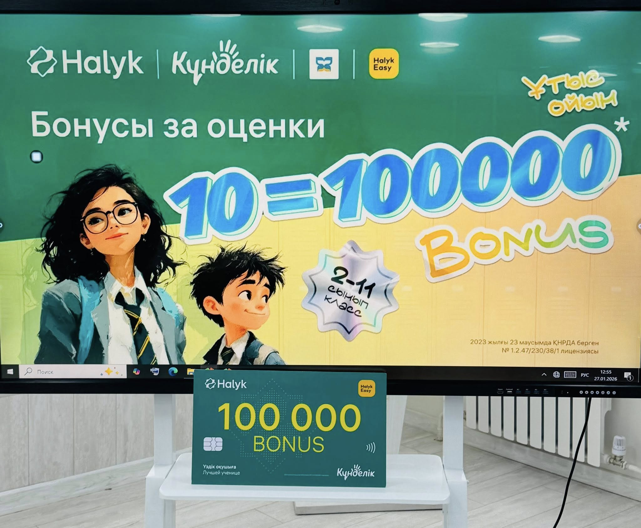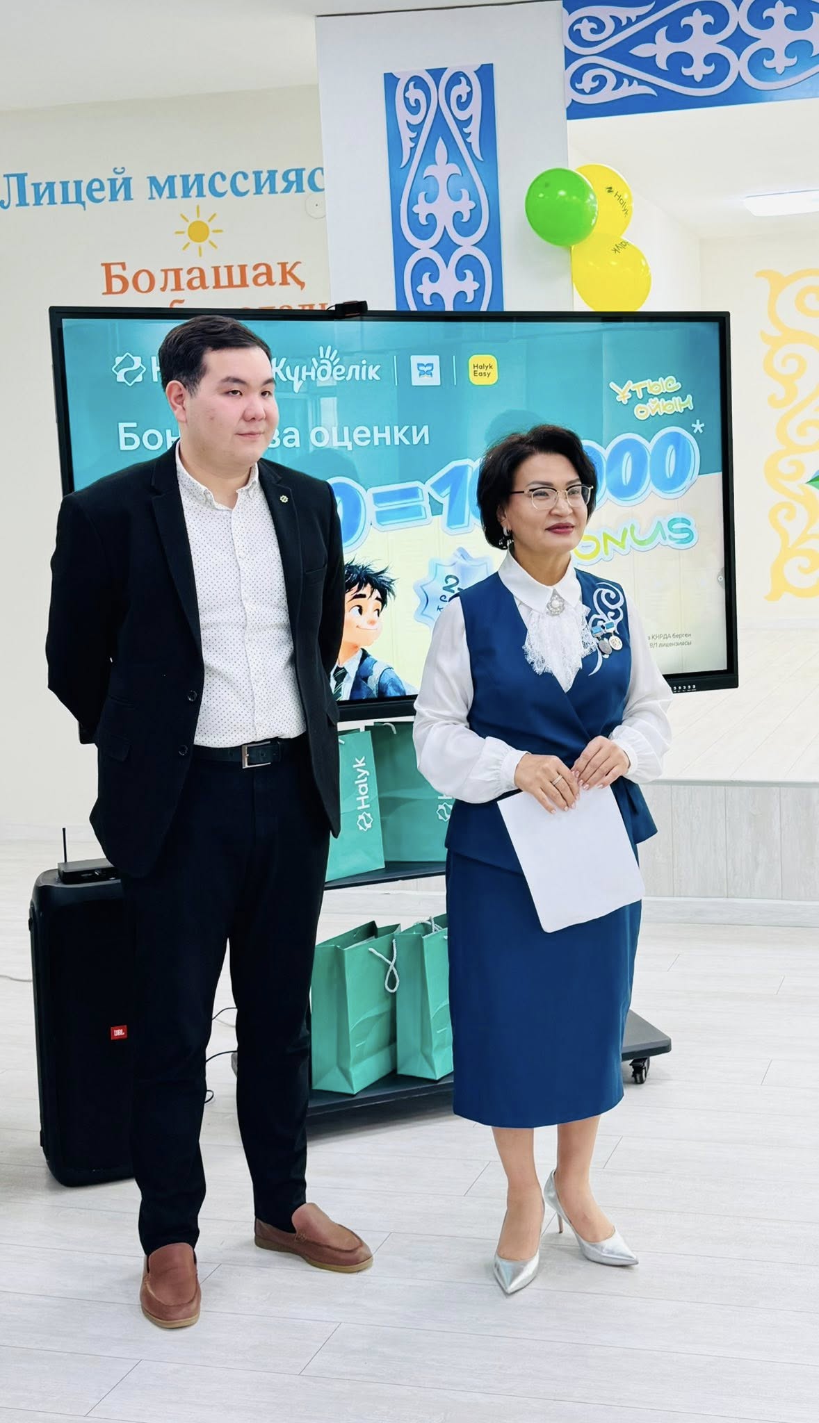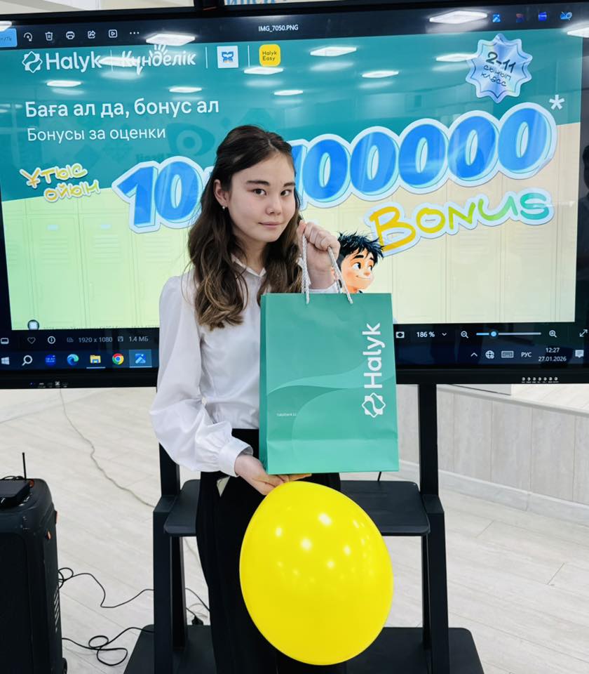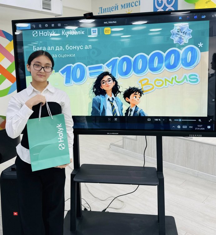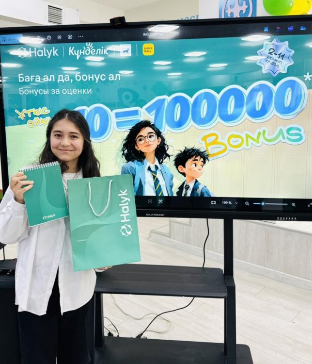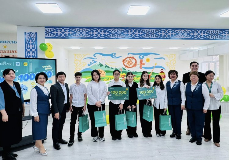 оқушыларымызды Халық банк өкілдері келіп , 100 000 бонус(100 000 тг) табыстады. Бұл оқушылардың  оқу жетістіктерін  көрсетуге және шыңдауға керемет ынталандырушы болды. Халық банк өкілдеріне шынайы ықылас  білдіре отырып, АЛҒЫС  айтамыз