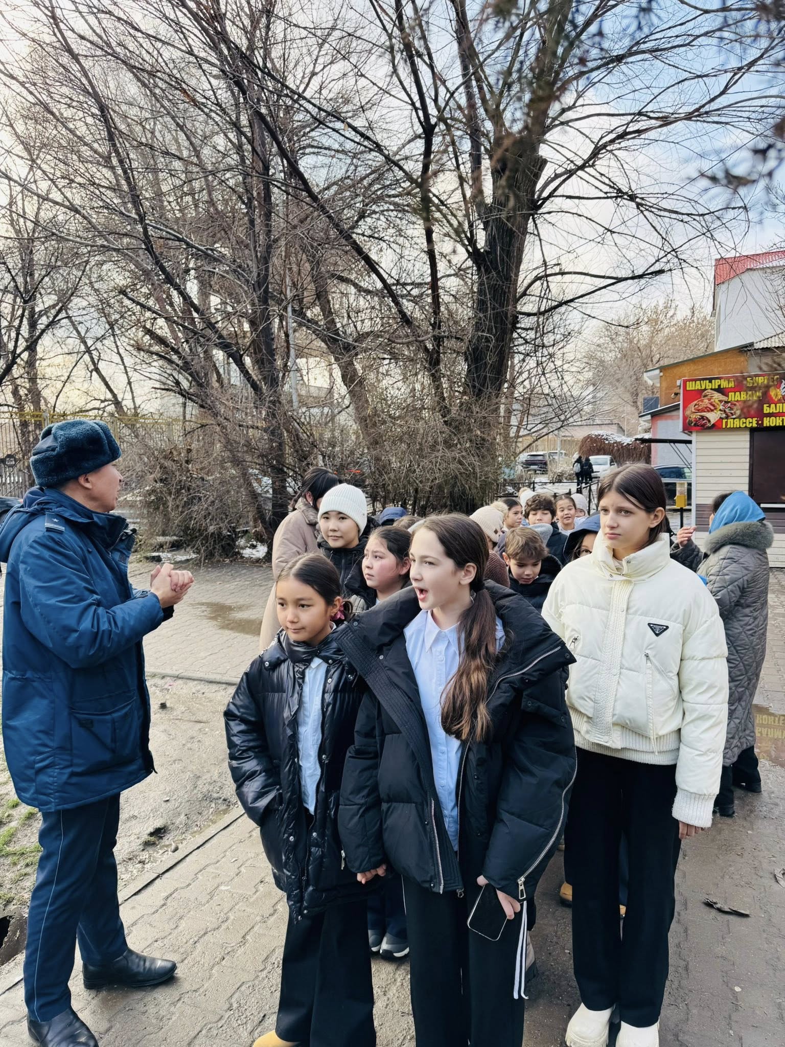 Кездесу барысында түрлі өмірлік жағдайлар мысалға алынып, жолдағы қауіпсіз жүріс-тұрыс алгоритмдері көрсетіліп, тәжірибе жүзінде пысықталды. Мұндай профилактикалық жұмыстар білім алушылардың өмірі мен денсаулығын сақтау мақсатында алдағы уақытта да өз жалғасын табатын болады.