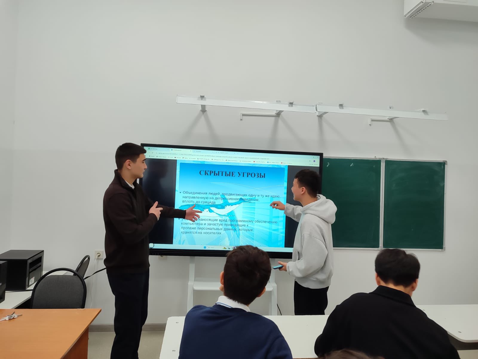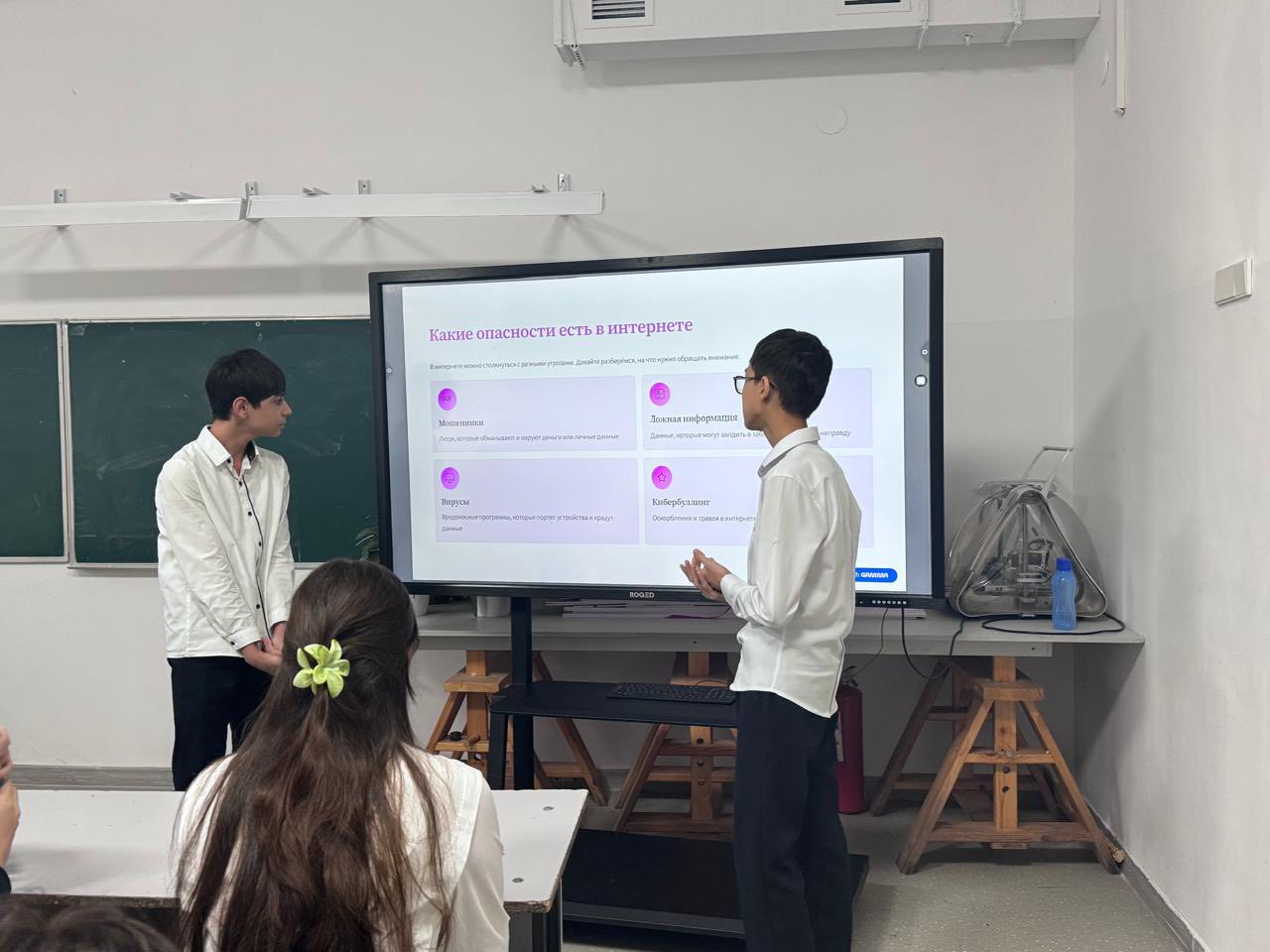 Сынып сағаттары барысында мұғалімдер кибербуллингтің алдын алу, жеке деректерді қорғау, бейтаныс адамдармен онлайн қарым-қатынас кезіндегі сақтық шаралары, жалған ақпаратты ажырату, әлеуметтік желілерді дұрыс пайдалану және интернет-тәуелділіктің алдын алу мәселелеріне ерекше тоқталды. Оқушыларға нақты өмірлік жағдайлар ұсынылып, талқылаулар, сұрақ-жауап сессиялары мен бейнероликтер арқылы қауіпсіздік ережелері кеңінен түсіндірілді.