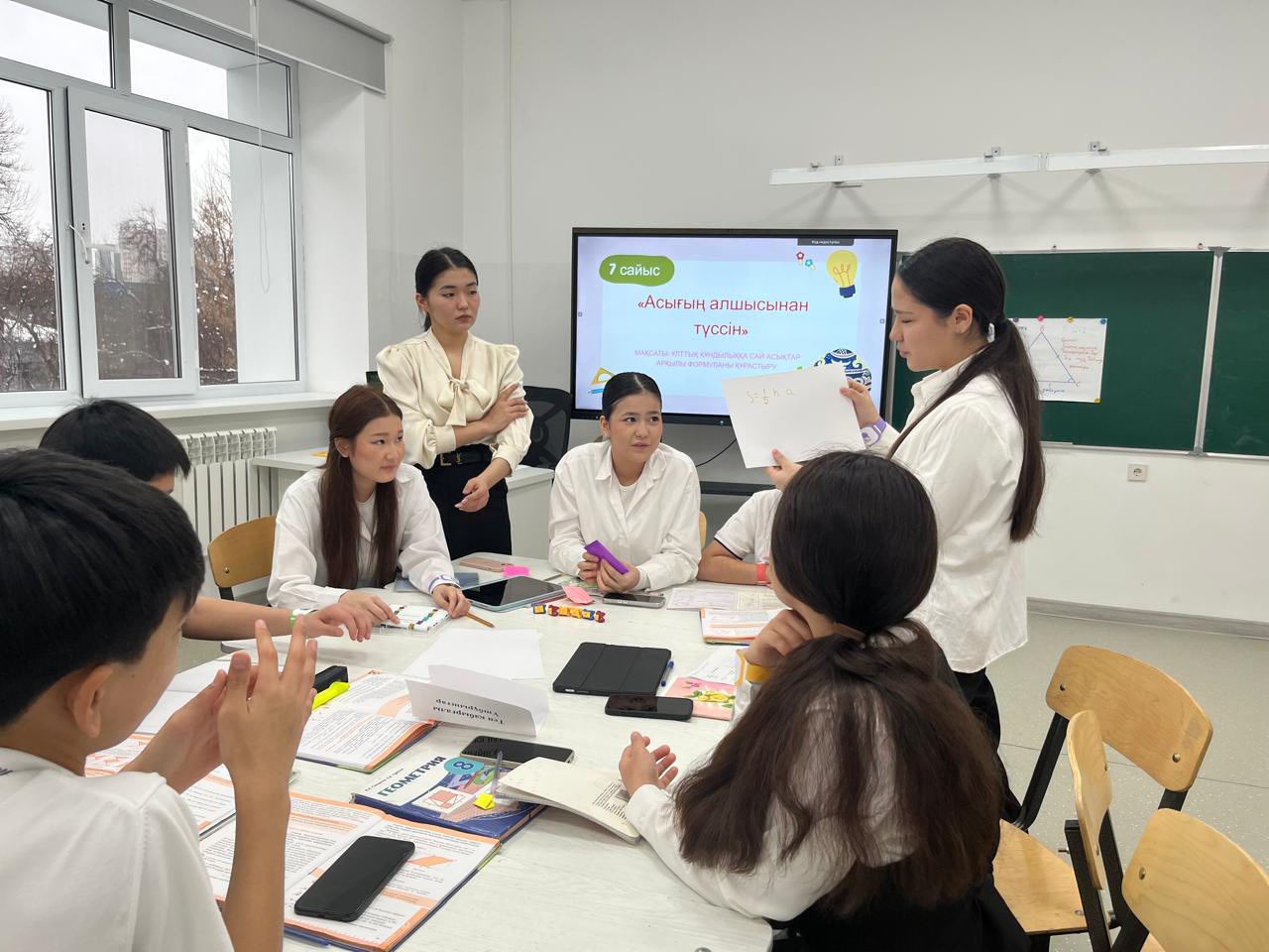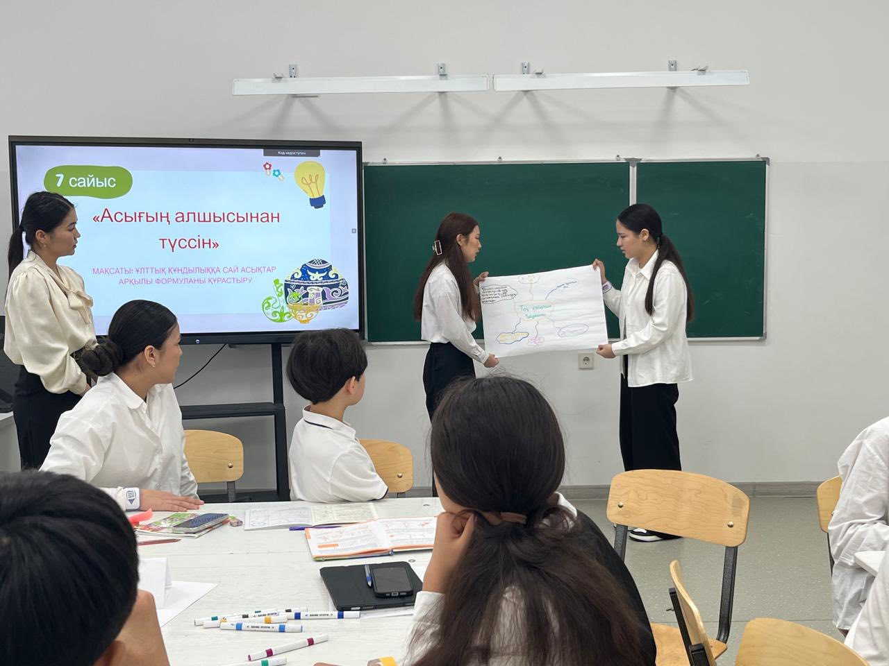 Түрлі әдіс-тәсілдер атап айтқанда «Викториналық сұрақтар», құндылықтарға негізделген «Асығың алшысынан түссін», топтық жұмысқа «Жасырын хат» тапсырмаларымен өткізілді. Сабақты логикамен байланыстырып, оқушыларға тәттілер табысталды. Ашық сабақтың қорытындылай келе балалар QR код арқылы кері байланыс жасады.