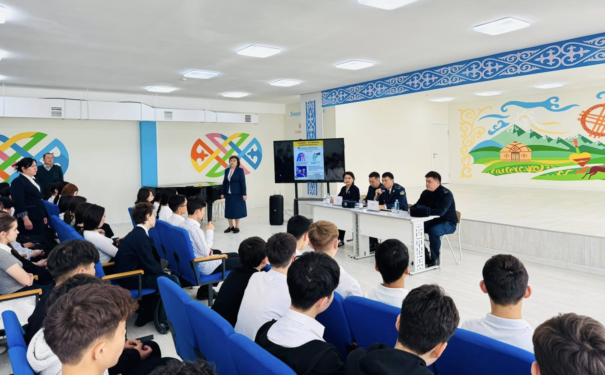 Құқық қорғау органдары өкілдері нақты мысалдар келтіре отырып, оқушыларға өз құқықтары мен міндеттерін білу – қауіпсіз әрі саналы қоғамның кепілі екенін атап өтті. Сонымен қатар, кез келген қысым, қорқыту немесе заңсыз әрекет жағдайында үнсіз қалмай, ата-анаға, мектеп әкімшілігіне немесе тиісті органдарға жүгінудің маңыздылығы түсіндірілді.