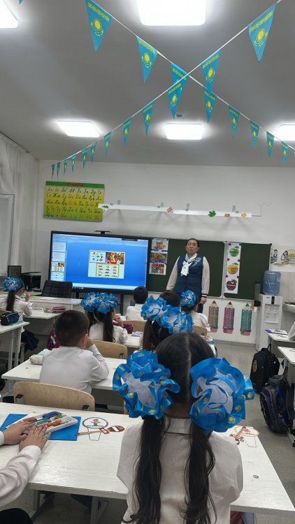2 “А” сыныбы және сынып жетекшісі А.К.Кожагулова еңбекке баулу пәнінен “Дәруменнің пайдасы” тақырыбында ашық сабақ өтті. Сабақ барысында оқушылар дұрыс тамақтанудың маңызы мен дәрумендердің адам денсаулығына пайдасы туралы ақпарат алды.