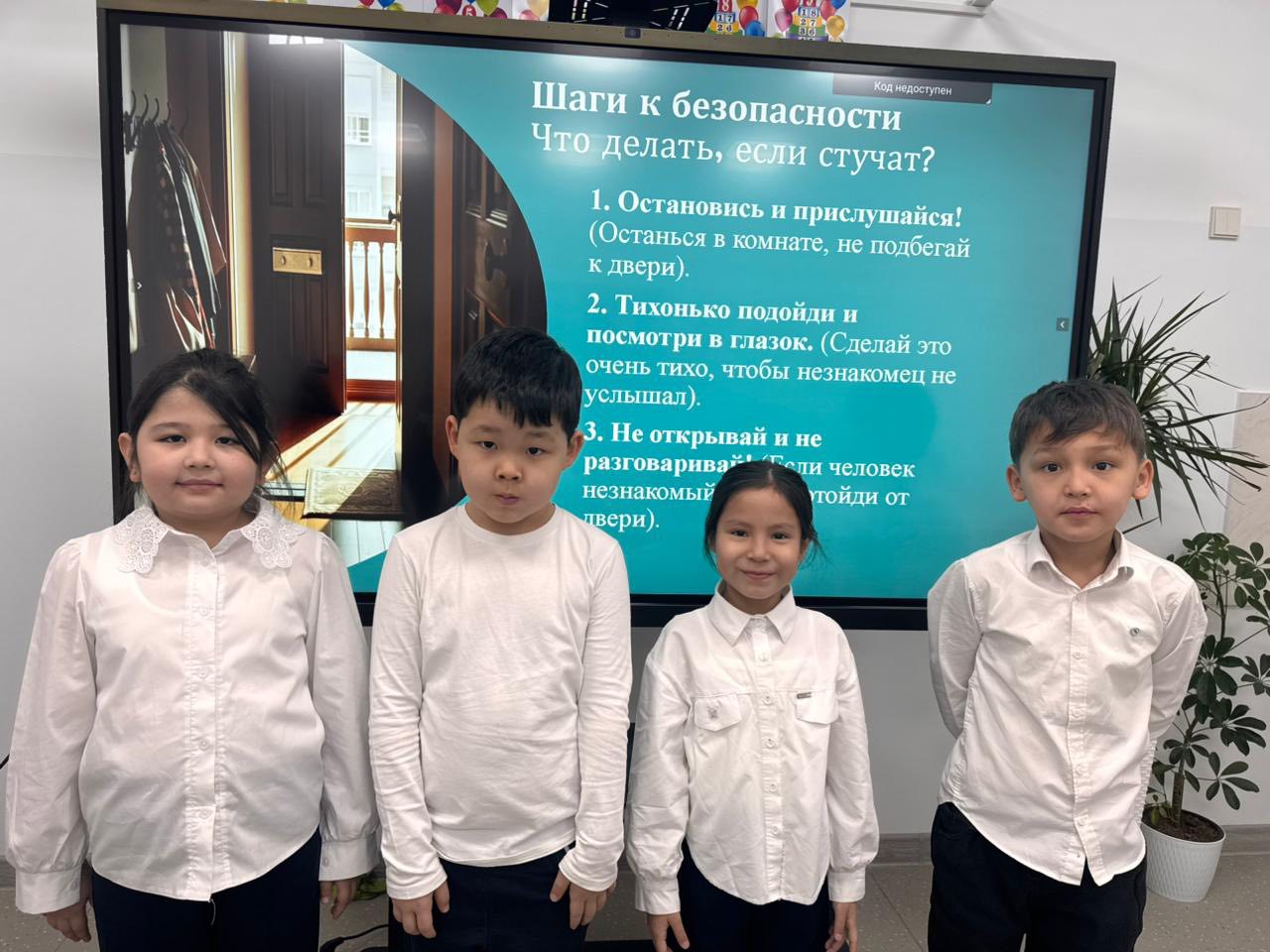 Бастауыш сынып оқушыларына бейтаныс адамдармен қарым-қатынас ережелері, үйде жалғыз қалғанда сақтық шаралары түсіндірілді. Қауіптің алдын алу, үлкендерге дереу хабарлау, сенімді мінез-құлық дағдылары ойын түрінде үйретілді.