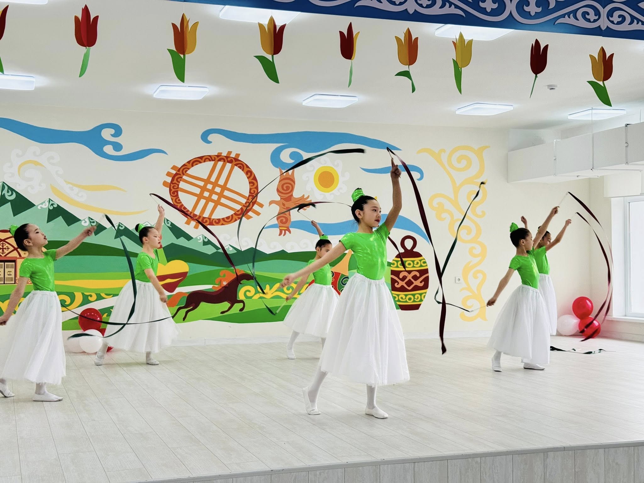 Сонымен қатар 5-сынып оқушыларының ән-би композициясы, 10-сынып қыздарының көркем биі және «Ана» тақырыбындағы әсерлі өлең жолдары кештің мазмұнын тереңдете түсті. Бұл өнер көрсетілімдері ананың мейірімі мен әйел затының қоғамдағы қадір-қасиетін дәріптеп, көрермендердің жүрегіне ерекше жылулық сыйлады. 💐