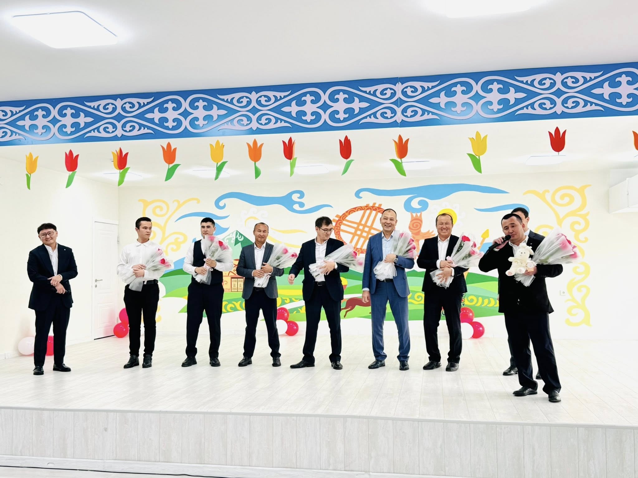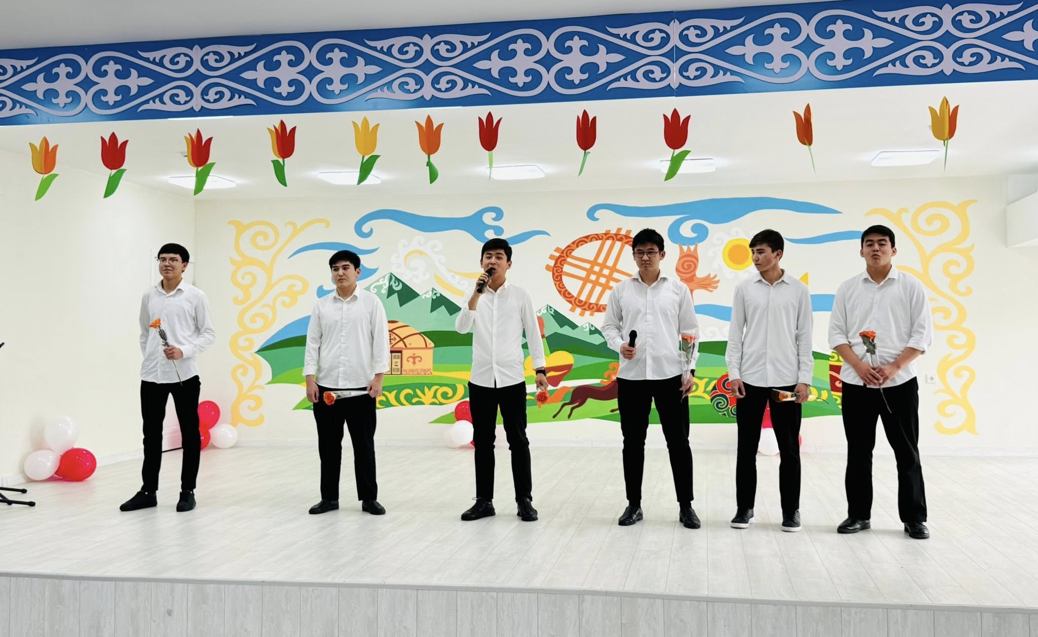 Мерекелік концерттің соңында лицей әкімшілігі атынан Гульназ Сайлауовна мен директордың орынбасарлары ұстаздарға арнап ән шашу ұсынып, кештің сәнін кіргізді.