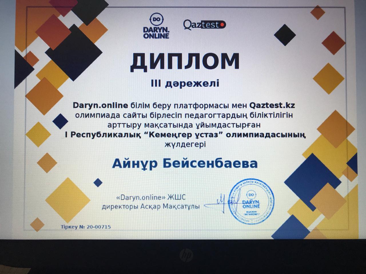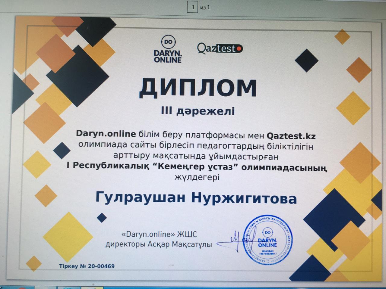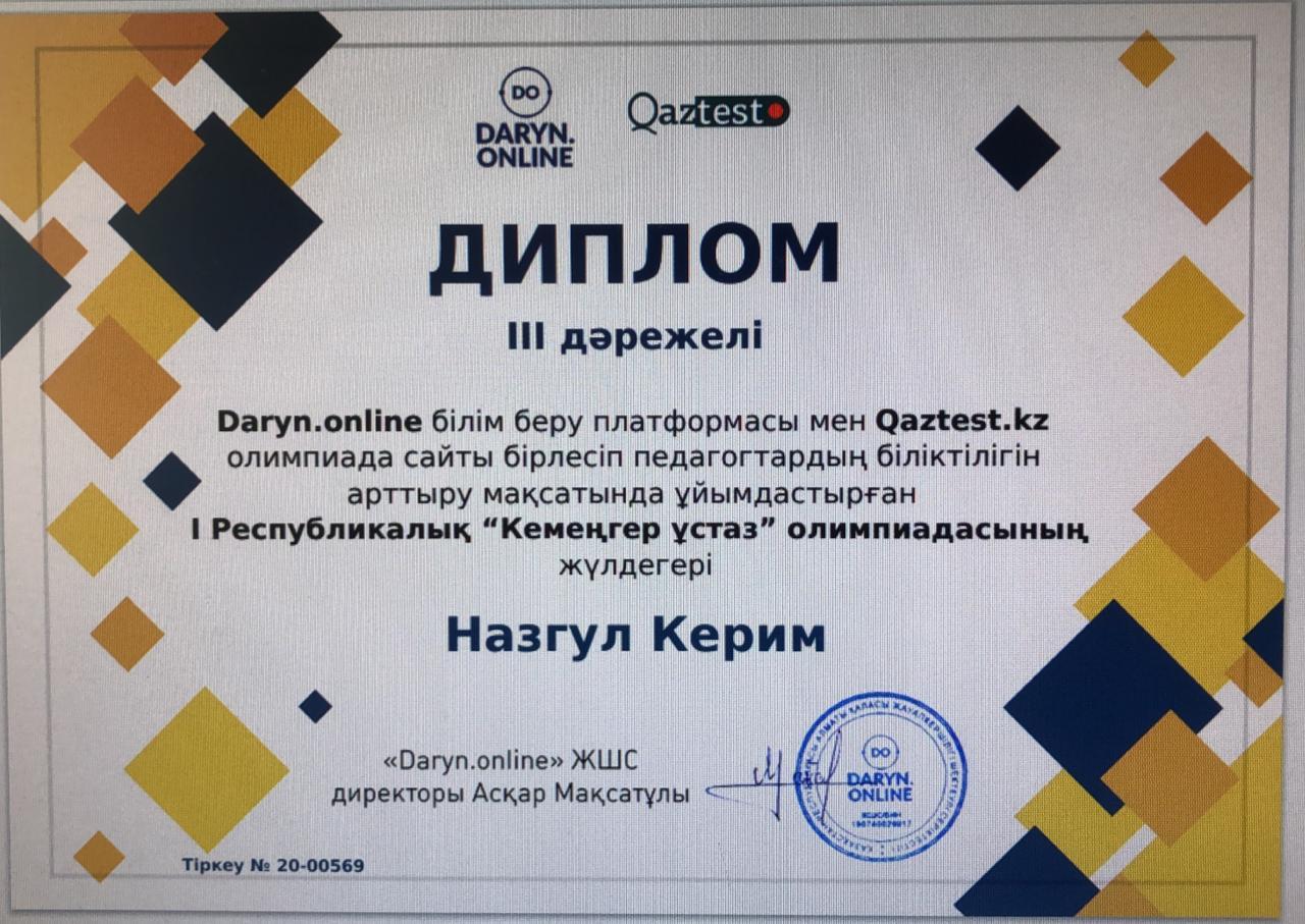 І Республикалық DARYN.ONLINE білім беру платформасында "КЕМЕҢГЕР ҰСТАЗ" олимпиадасы