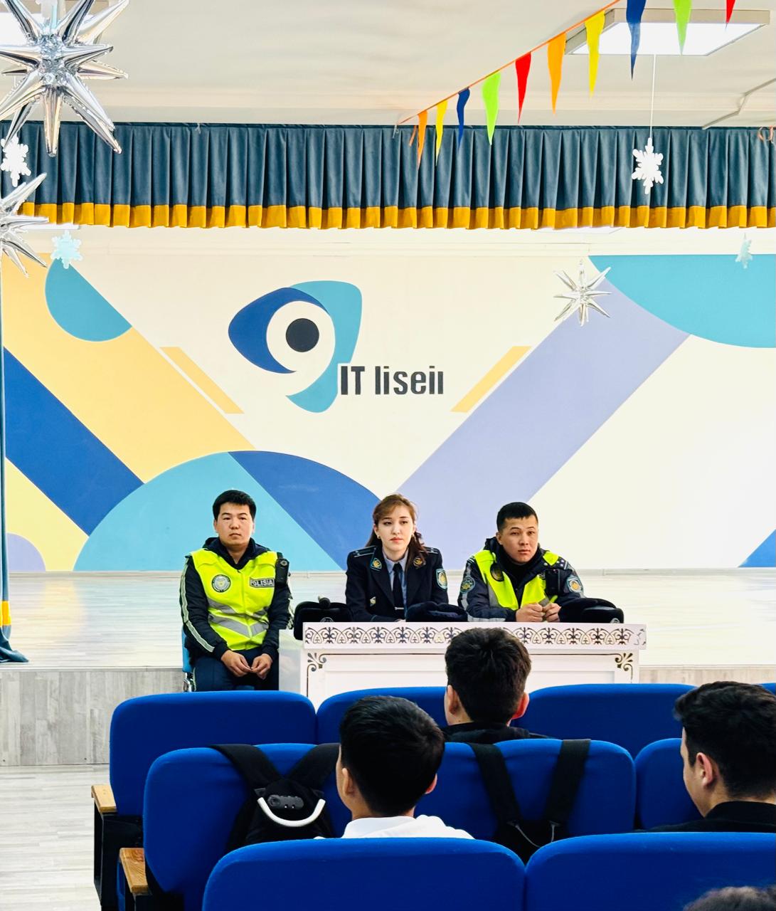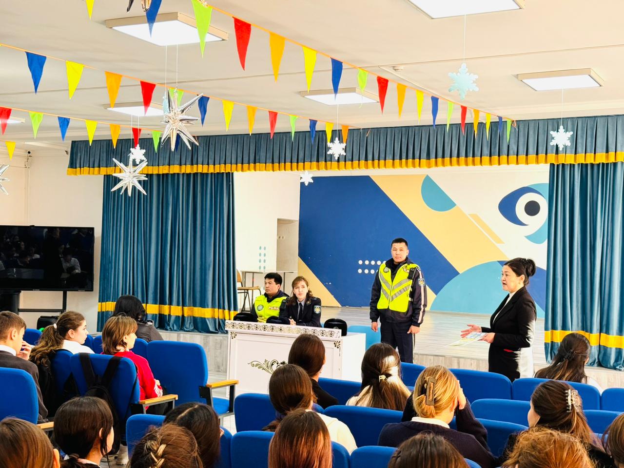 Шымкент қаласы білім басқармасына қарасты Ө.А.Жолдасбеков атындағы №9 ІТ лицейінде 14.01.2025ж Шымкент қаласы жергілікті полиция қызметінің патрульдік полиция полкінің қызметкерлері полиция лейтенанты Қалдыбек Ақниет Алмасқызы, полиция аға лейтенанты Бектұған Мухаммед Исабекұлы, полиция аға лейтенанты Есенбек Мадияр Абдуғабитұлы 8 сынып оқушылар арасында жол жүру ережелері туралы профилактикалық түсіндірме жұмыс жүргізді.