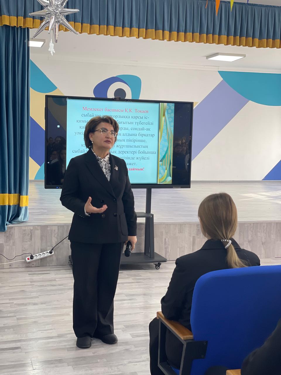 Шымкент қаласы білім басқармасына қарасты Ө.А.Жолдасбеков атындағы №9 ІТ лицейінде 16.01.2025ж сыбайлас жемқорлыққа қарсы оқушылардың көзқарасын нығайтуға тәрбиелік мәні бар бірыңғай "ЗАҢ мен ТӘРТІП" тақырыбында адалдық сағаты өткізілді.