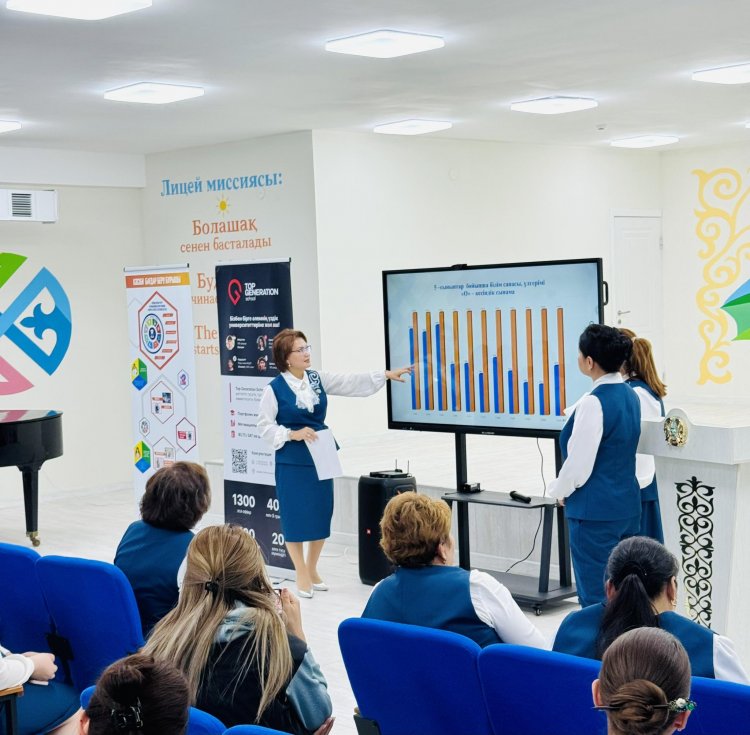 Оқу процесінде жасанды интеллектті пайдалану көрсеткіштерімен Г.С.Нуржигитова таныстырып, білім беру сапасын арттыруда цифрлық технологиялардың маңызын ерекше атап өтті.