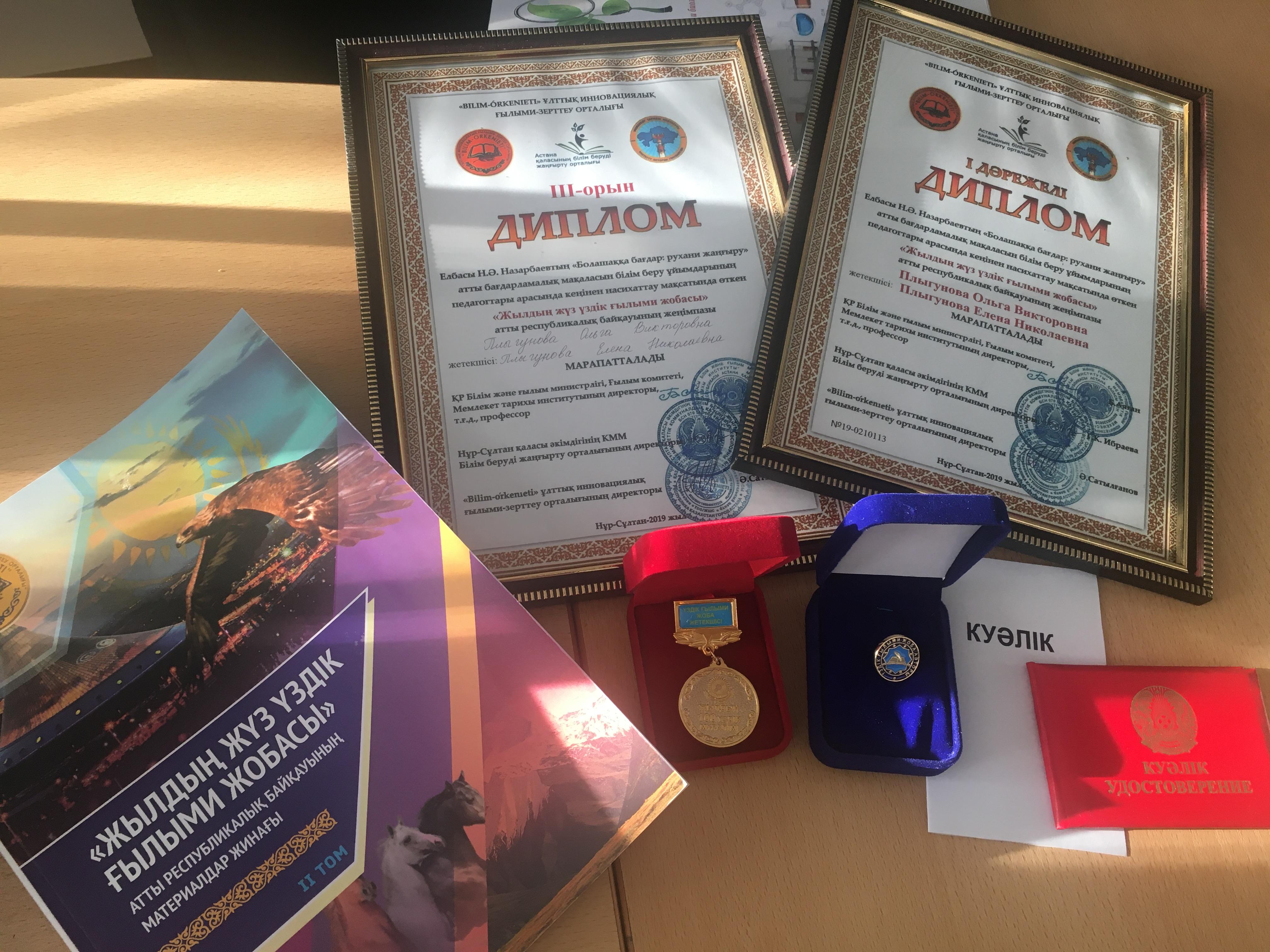 Елбасы Н.Ә Назарбаев "Болашаққа бағдар: рухани жаңғыру" атты бағдарламалық мақаласын білім беру ұйымдарының педагогтары арасында кеңінен насихаттау мақсатында өткен "Жылдың жүз үздік ғылыми жобасы" атты республикалық байқауында Ө.А Жолдасбеков атындағы №9 лицейінің мұғалімі Плыгунова Елена Николаевна жеңімпаз атанды.