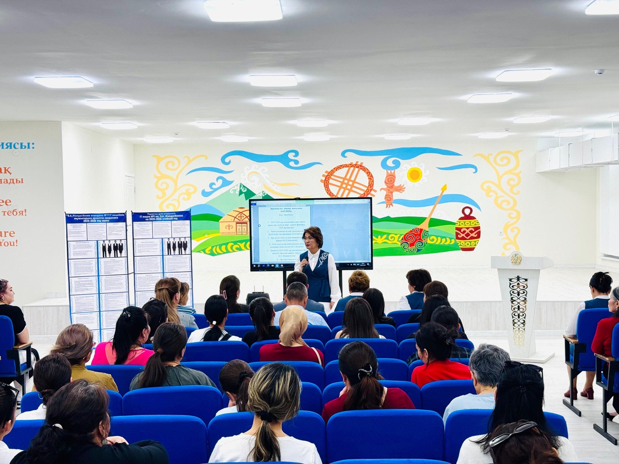 2024-2025 оқу жылы ерекшеліктері мен күрделі жөндеу қорытындысы – баяндамашы Абилдаева Г.С. Жыл бойы атқарылған жұмыстарды қорытындылап, лицей ғимаратындағы күрделі жөндеу нәтижелерімен таныстырды.