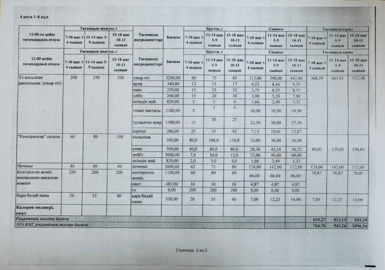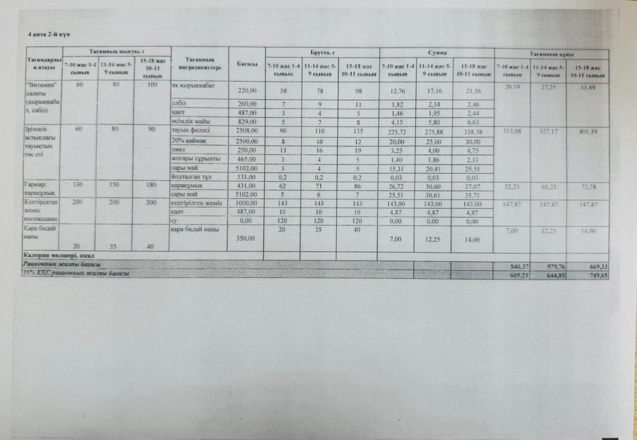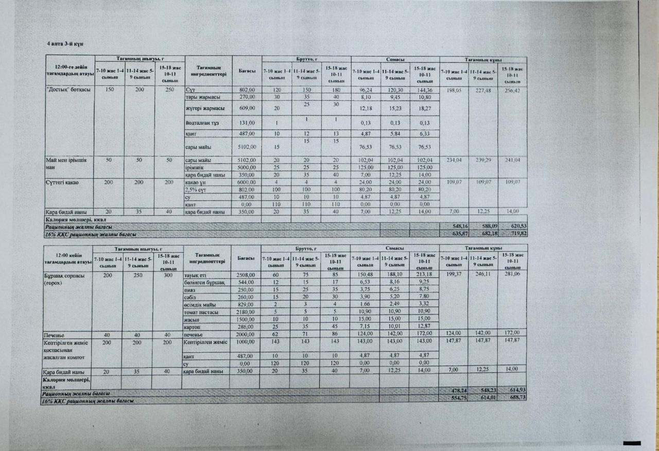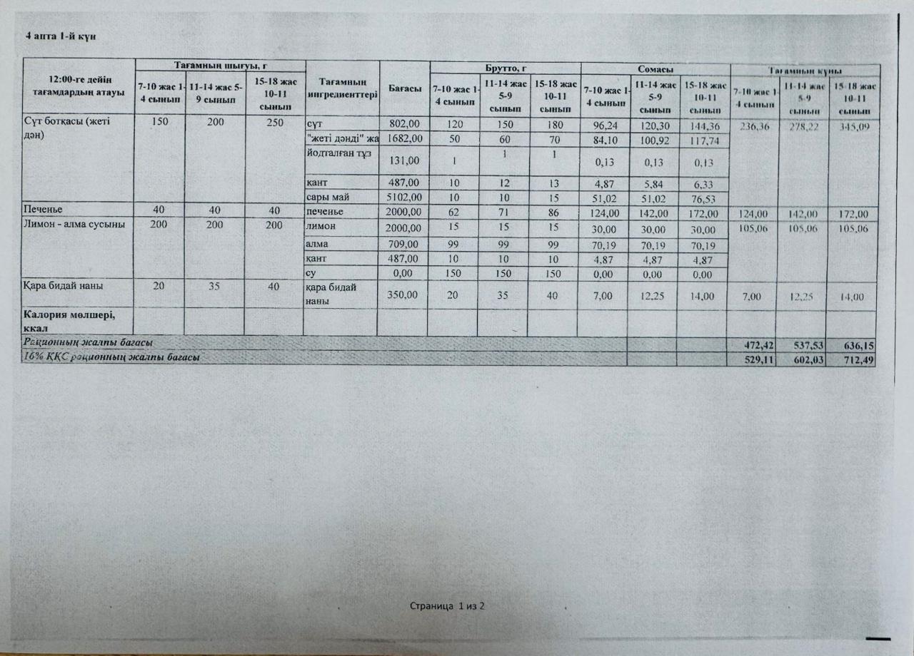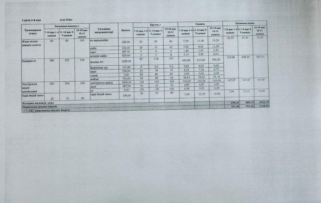 14 қаңтар 2026 0 1 2 3 4 5 ЛИЦЕЙ АСХАНАСЫНЫҢ АС МӘЗІРІ Лицей асханасының төртінші аптасының ас мәзірі