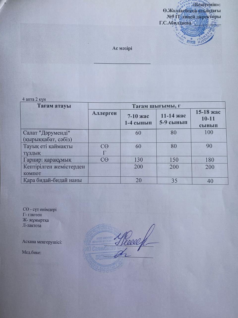 ЛИЦЕЙ АСХАНАСЫНЫҢ БҮГІНГІ АС МӘЗІРІ » «Ө.Жолдасбеков атындағы №9 IT лицейі»