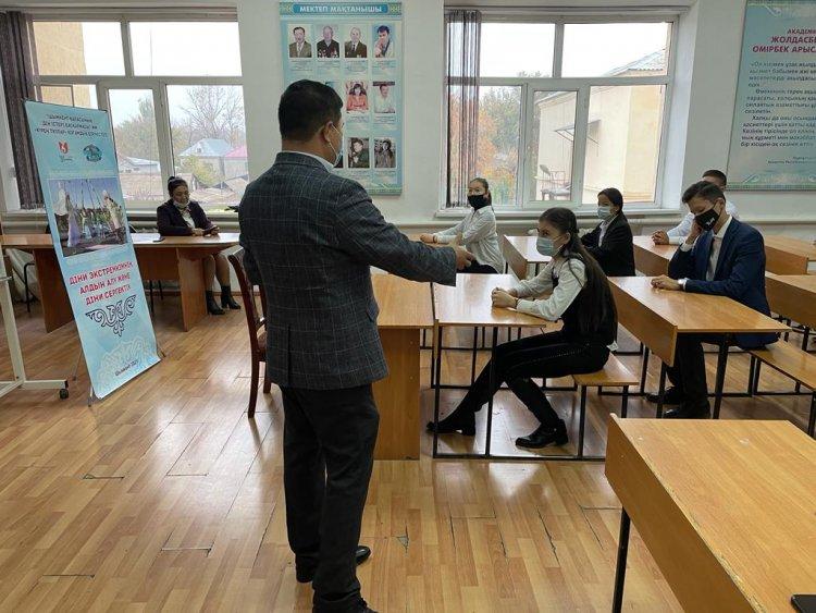 Шымкент қаласы білім басқармасына қарасты Ө.А.Жолдасбеков атындағы № 9 ІТ лицейінде 29.10.2021 жылы "Бала құқығы - адам құқығы" республикалық айлығы барысында Шымкент қаласының дін істері басқармасы мемлекеттік мекемесі және "Күрең Тұлпар" қоғамдық бірлестігінің ұйымдастыруымен және дінтанушы Б.А.Омарбаевтың қатысуымен "Діни экстремизнің алдын алу және діни сергектік" тақырыбында дәріс оқыды.