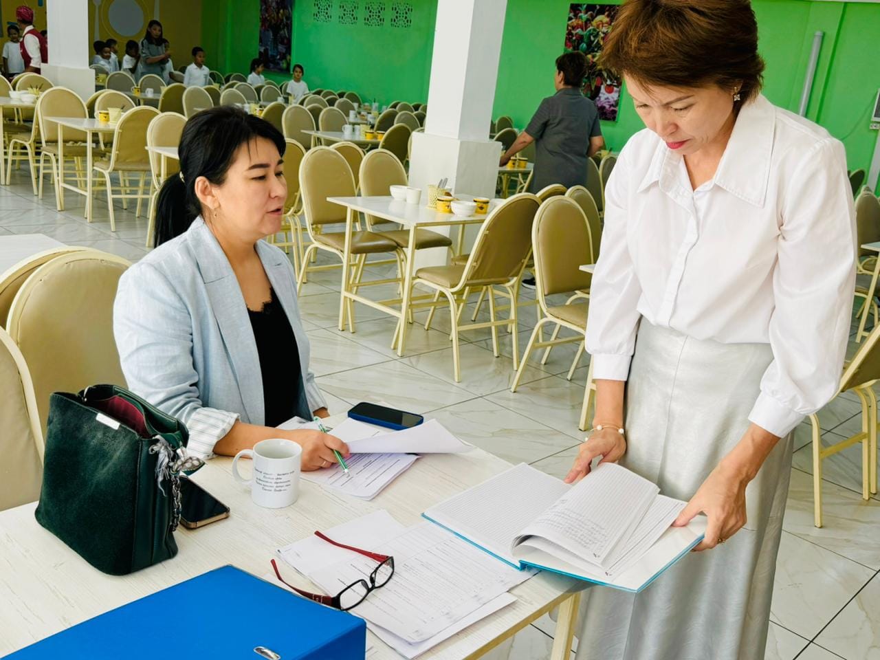 Шымкент қаласының білім басқармасының 13.09.2024 жылғы №401 бұйрығына сәйкес, білім беру мекемелеріндегі асханаларда ыстық тамақты ұйымдастыру сапасына және санитарлық- эпидемиологиялық талаптарының сақталуын қамтамасыз етілуін бақылау және зерделеу тобы бүгін Ө.Жолдасбеков атындағы №9 ІТ лицейінің асханасын тексерді. Тексеру барысында мектептегі тамақтануды ұйымдастыруға қойылатын жалпы талаптар, мектептегі ас блогының жұмысы талданды. Зерделеу тобы лицей асханасында азық-түлікті сақтау шарттарының орындалатынын, мәзірдің әртүрлілігі және бөліктің нақты салмағы оның мәзір нормасына сәйкес келетінін, ыдыс-аяқтың бүтін және жеткілікті екенін, оқушылардың тегін ыстық тамақтандыру кестесі мен тағамдар үшін температуралық режимнің сақталуы сәйкес келетінін анықтады.